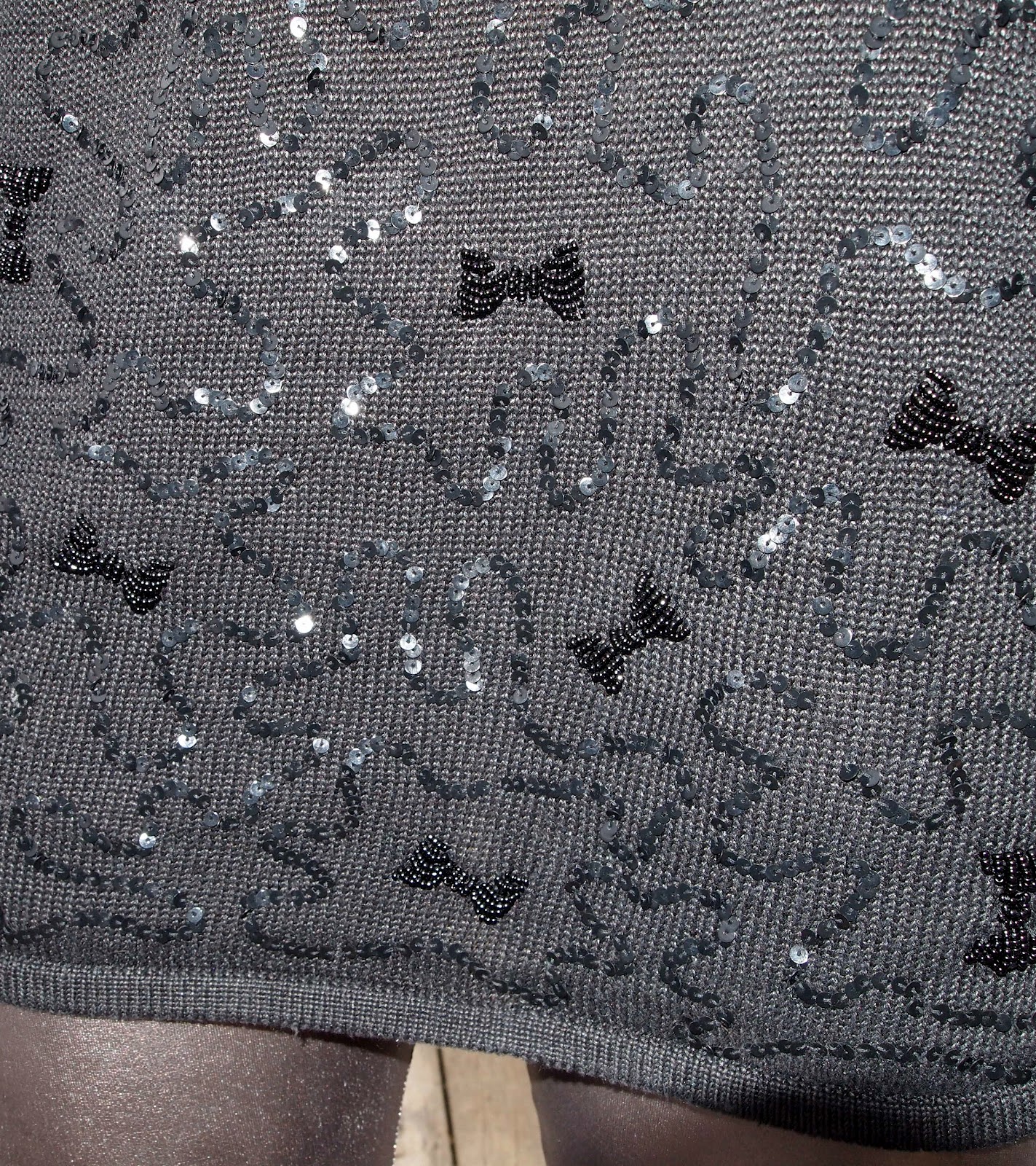 I found this amazing sweater at the Salvation Army for $2. It's black, has sequins and beaded bows! What's not to love? I love that it's long enough that I can safely pair it with a pair of leggings. I could have went with black or gray leggings, but I saw these babies in my drawer and knew they were the ones. I paired the outfit with some scaly looking pumps and some big chandelier earrings.